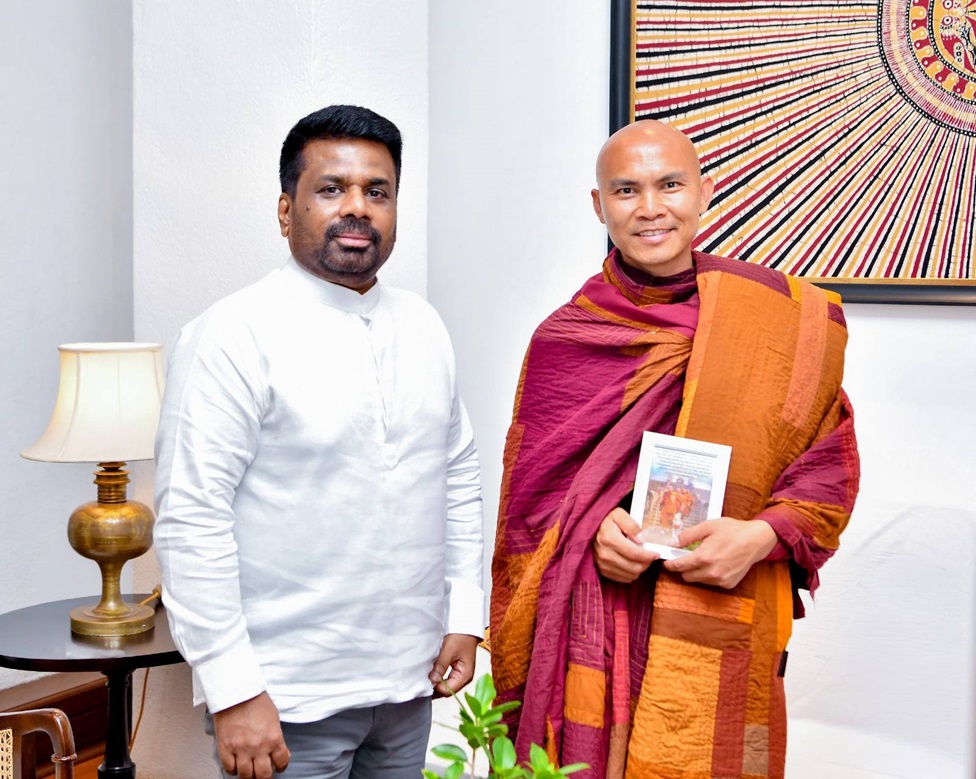 ලෝකවාසී ජනතාවට සාමයේ පණිවිඩය බෙදා හරිමින් සහ බුදු දහමේ උරුමය ජාත්යන්තරය වෙත රැගෙන යමින් දින 07ක් පුරා මෙරටදී පැවැත්වුණු “එහිපස්සිකෝ” සාම පාගමනේ සමාප්ති රාජ්ය උත්සවයෙන් පසු පූජ්ය පඤ්ඤාකර ස්වාමීන්වහන්සේ ඊයේ (29) රාත්රියේ ජනාධිපති කාර්යාලය වෙත පැමිණ ජනාධිපති අනුර කුමාර දිසානායක මහතා හමු වූහ.
