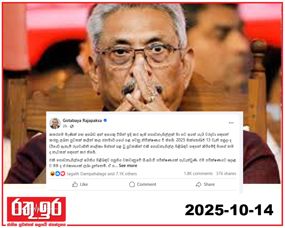 කතරගම මැණික් ගඟ අයිනේ පිහිටි නිවසක් පෙන්වමින් මාධ්ය නිරන්තරයෙන් පුවත් මැව්වත් තමන්ට හිමි නිවසක් මැණික් ගඟ අසබඩ නැතැයි හිටපු ජනාධිපති ගෝඨාභය රාජපක්ෂ සිය ෆේස්බුක් ගිණුමේ සටහනක් තබමින් ප්රකාශ කර ඇත.