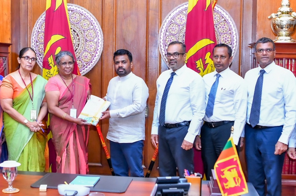 ශ්‍රී ලංකාවේ ජන හා නිවාස සංගණනය 2024ට අදාළ අවසන් වාර්තාව ජනලේඛන හා සංඛ්‍යාලේඛන දෙපාර්තමේන්තුවේ අධ්‍යක්ෂ ජනරාල් කේ.එම්.ඩී.එස්.ඩී. කරුණාරත්න මහත්මිය විසින් ජනාධිපති අනුර කුමාර දිසානායක මහතා වෙත අද (06) පස්වරුවේ ජනාධිපති කාර්යාලයේදී නිල වශයෙන් භාර දෙනු ලැබිණ.