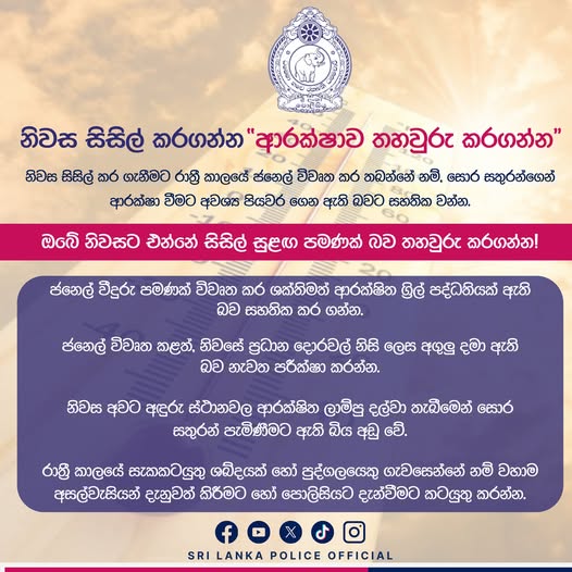 නිවස සිසිල්ව පවත්වා ගැනීම සඳහා නිවසේ ආරක්ෂාව අඩු නොකළ යුතු බව පොලිසිය පැවසීය.