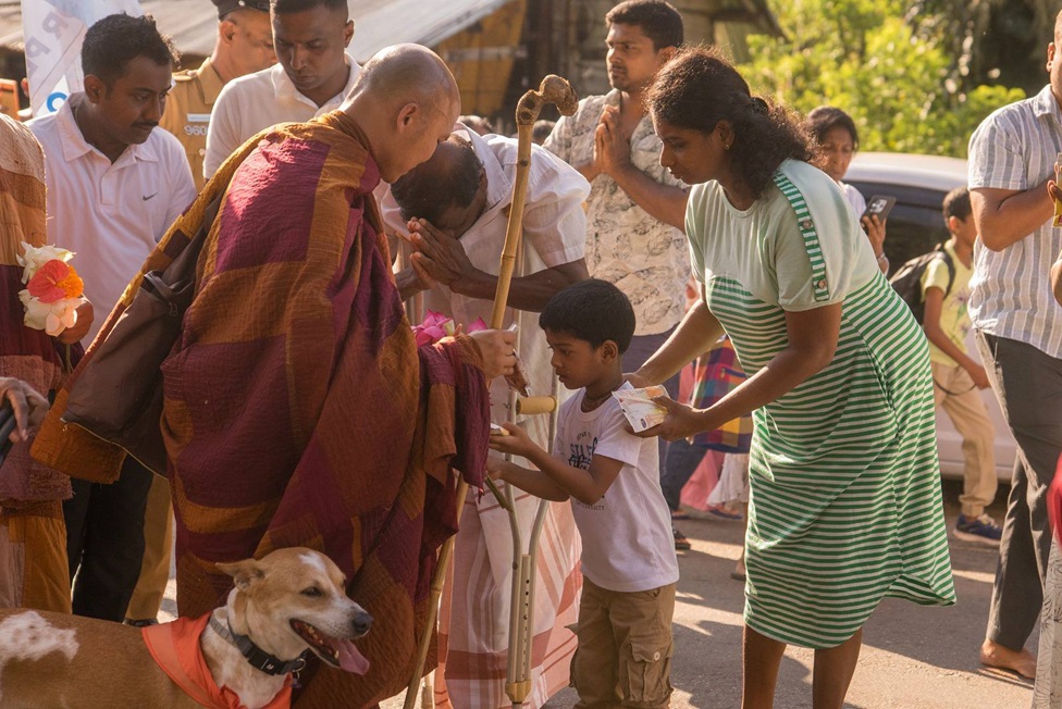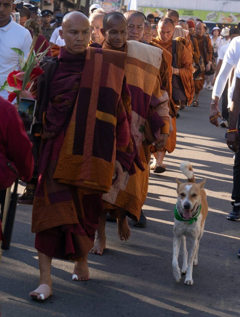 පාවහන් නොමැතිව රත් වූ පොළොව මතින් වඩින භික්ෂූන් වහන්සේ, උන්වහන්සේගේ සතිමත් සහ සුශික්ෂිතභාවය, හිරු එළියෙන් දිදුලන සිවුරු, සහ දෝතින් නොයෙක් පෑ සුවඳ මල් දරා පාර දෙපස පෙළ ගැසී සිටින බැතිමතුන් අසිරිමත් දසුනකි. වැඩිහිටියන්, කුඩා දරුවන් ඇතුළු සියලු දෙනා මේ දසුනෙහි සක්රීය කොටස්කරුවෝ වෙති. අතැති දේ පුදති. එහෙත් ගමනට පහසුව මිස බාධා නොකරති.