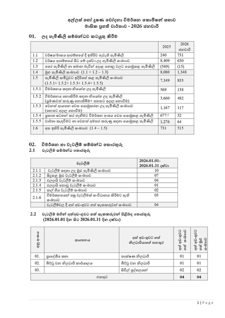 2026 ජනවාරී මාසය තුළ පමණක් අල්ලස් සම්බන්ධ පැමිණිලි 630ක් ලැබී ඇති බව අල්ලස් හෝ දූෂණ චෝදනා විමර්ශන කොමිසම පවසයි.
