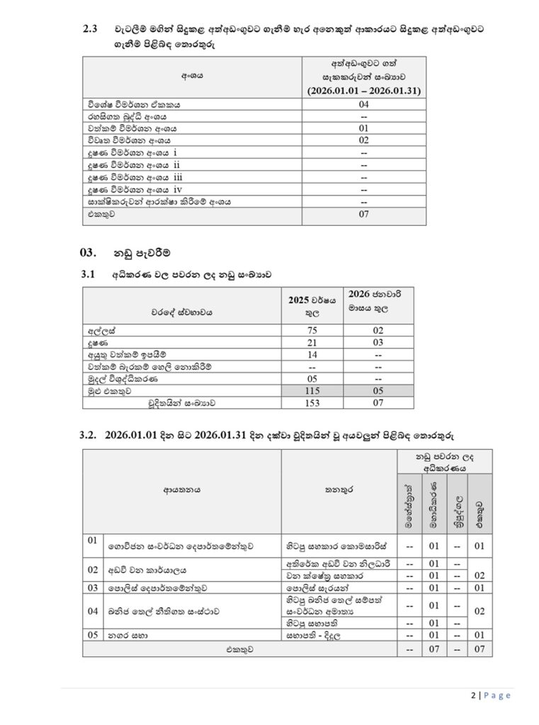 2026 ජනවාරී මාසය තුළ පමණක් අල්ලස් කොමිෂමට පැමිණිලි 630ක්