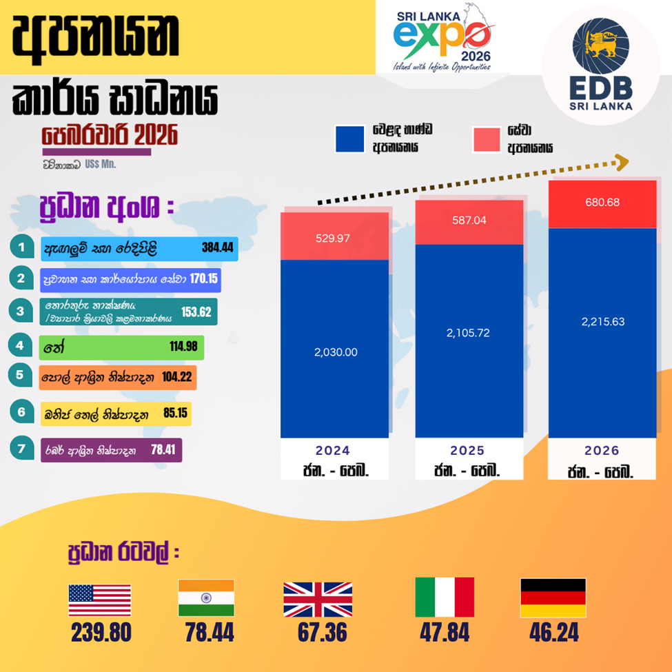 2026 පෙබරවාරි මාසයේදී ශ්‍රී ලංකාවේ අපනයන වර්ධනයක්