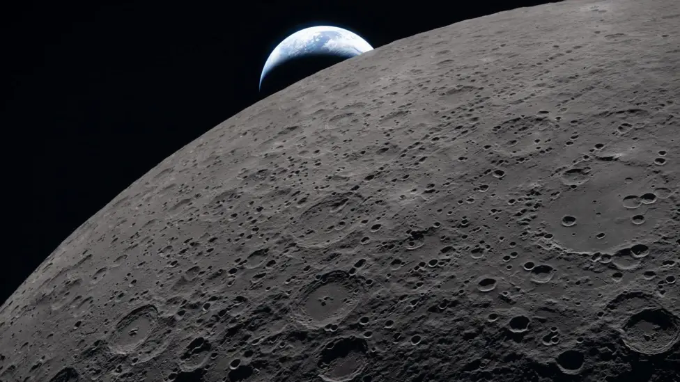 පෘථිවිය සඳ පිටුපසින් එබී බලන ආකාරය දැක්වෙන මෙම ඡායාරූපය ගනු ලැබුවේ ඔරියන් අභ්යවකාශ යානය සහ එහි කාර්ය මණ්ඩලය සඳ පිටුපසට ගොස් පෘථිවිය සමඟ සම්බන්ධතාව විනාඩි 40 ක් අහිමි වී අනෙක් පැත්තට පැමිණීමට මිනිත්තු තුනකට පෙරය.