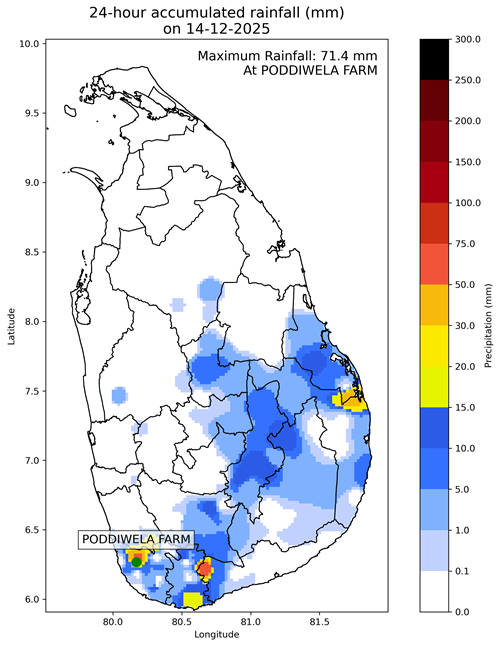 වැසි තත්ත්වය: කන්කසන්තුරය සිට ත්රිකුණාමලය හරහා පොතුවිල් දක්වා වෙරළට ඔබ්බෙන් වන මුහුදු ප්රදේශවල තැනින් තැන වැසි ඇති වේ. දිවයින වටා වන සෙසු මුහුදු ප්රදේශවල සවස් කාලයේදී හෝ රාත්රී කාලයේදී ස්ථාන ස්වල්පයක වැසි හෝ ගිගුරුම් සහිත වැසි ඇති විය හැක.