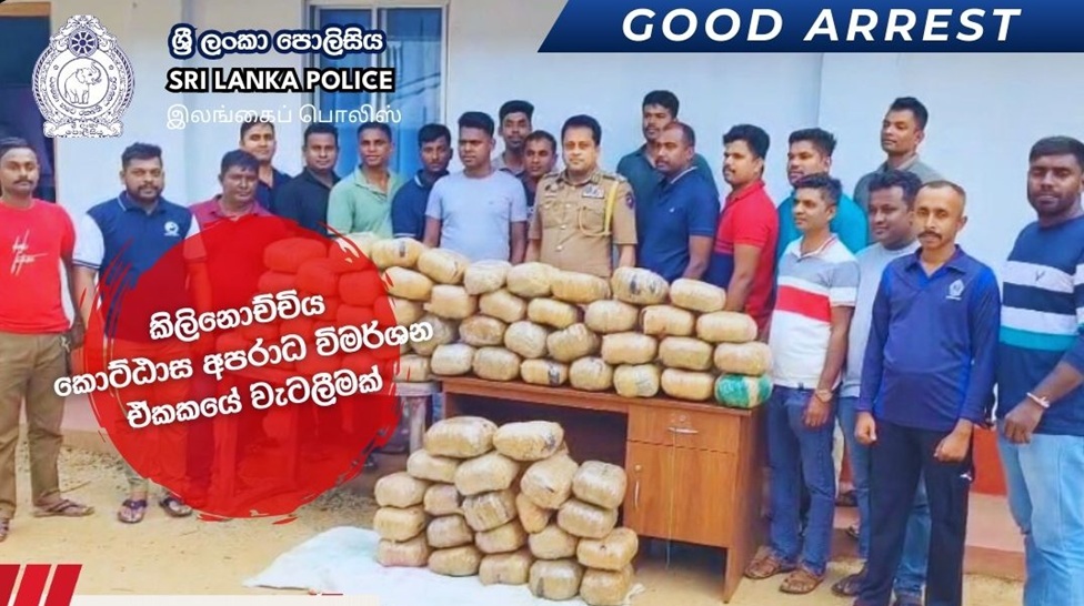 කිලිනොච්චිය කොට්ඨාසය අපරාධ විමර්ශන ඒකකයේ නිලධාරීන් අද (29) දින අළුයම කිලිනොච්චි පන්නන්කන්ඩි ප්රදේශයේදී කේරල ගංජා කිලෝග්රෑම් 131 ග්රෑම් 013ක් සන්තකයේ තබා සිටි සැකකරුවෙකු අත් අඩංගුවට ගෙන ඇත.