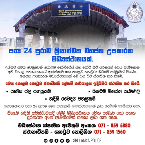 උත්සව සමය වෙනුවෙන් කොළඹ ගෝල්ෆේස් (Galle Face) සහ පෝට් සිටි (Port City) පරිශ්‍රයන් වෙත පැමිණෙන අති විශාල ජනකායකගේ ආරක්ෂාව සහ පහසුව තහවුරු කිරීමේ අරමුණින් විශේෂ මහජන උපකාරක මධ්‍යස්ථානයක් මේ වන විට ස්ථාපිත කර තිබේ.