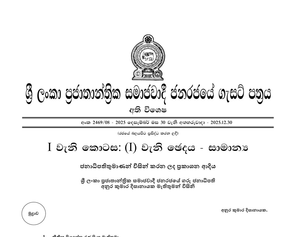 මෙම ගැසට් නිවේදනය පහත පළ වේ.