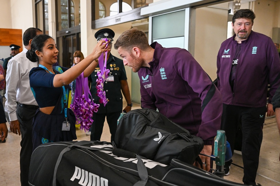 සංචාරක එංගලන්ත ක්‍රිකට් කණ්ඩායම පිළිගැනීම සඳහා ශ්‍රී ලංකා ක්‍රිකට් ආයතනය, ශ්‍රී ලංකා සංචාරක ප්‍රවර්ධන කාර්යාංශයේ නිලධාරීන් ඇතුළු පිරිසක් එක්ව සිටියේය.