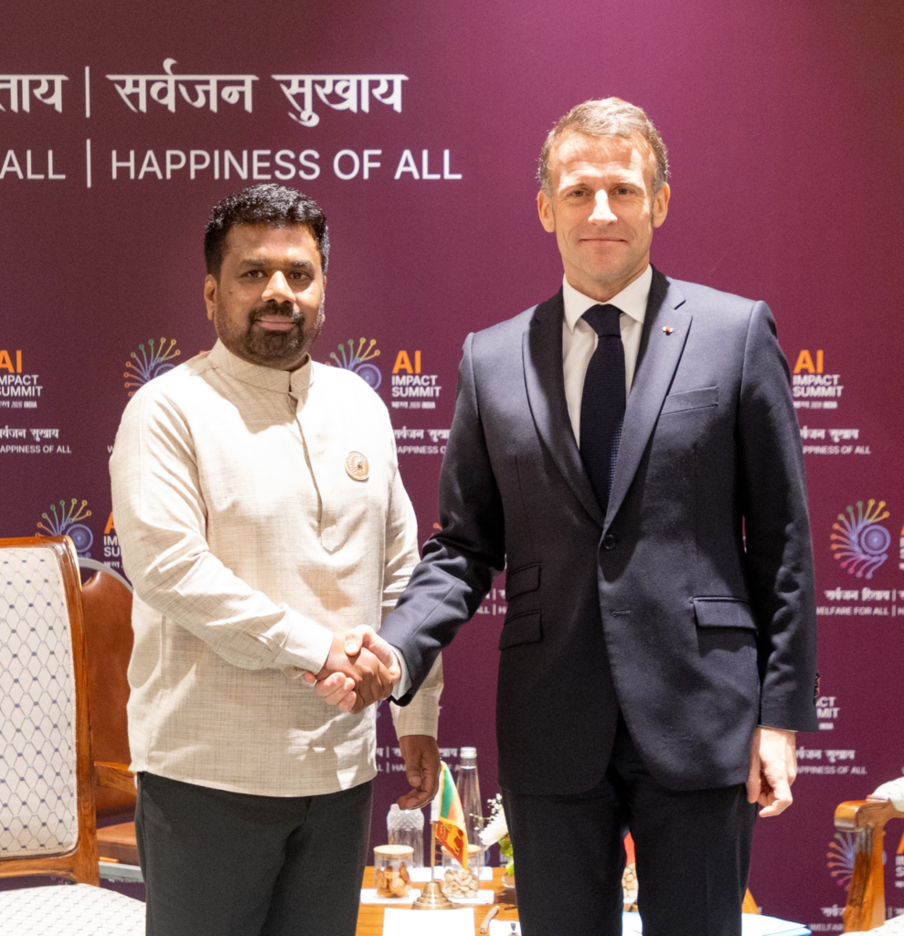 ජනාධිපති අනුර කුමාර දිසානායක මහතා සහ ප්රංශ ජනාධිපති Emmanuel Macron මහතා අතර ද්විපාර්ශ්වික සාකච්ඡාවක් අද (19) පස්වරුවේ සිදු විය. නවදිල්ලි නුවර පැවැත්වෙන AI Impact 2026 සමුළුවට සහභාගි වන අතරතුර මෙම රාජ්ය නායක හමුව සිදු විය.