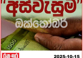 අස්වැසුම පළමු අදියර ප්රතිලාභීන්ගේ ඔක්තෝබර් මස ප්රතිලාභී දීමනාව හෙට එම ප්රතිලාභීන්ගේ බැංකු ගිණුම් වලට බැර කිරීමට කටයුතු කරන බව සුබසාධක ප්රතිලාභ මණ්ඩලය පවසයි. නන්ද කුමාර හින්නිආරච්චි