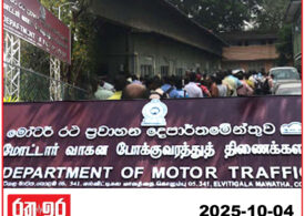 ව්යාජ තොරතුරු දක්වමින් වාහන ලියාපදිංචි කිරීමේ සිදුවීම් කිහිපයක් සම්බන්ධයෙන් මෝටර් රථ දෙපාර්තමේන්තුවේ නිලධාරින් පිරිසකට එරෙහි විමර්ශනය ආරම්භ වී ඇති බව පොලීසිය පවසයි.මධ්යම අපරාධ විමර්ශන කොට්ඨාසය මෙහෙයවීමෙන්...