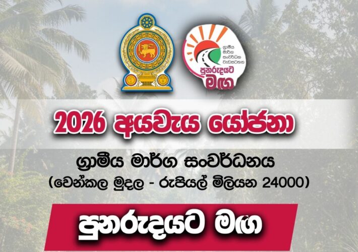 ‘පුරුදයට මඟ’ ග්රාමීය මාර්ග සංවර්ධන ව්යාපෘතිය හෙට (01) ආරම්භ වන බව ප්රවාහන හා මාර්ග සංවර්ධන නියෝජ්ය අමාත්ය ප්රසන්න ගුණසේන මහතා පවසයි. 2026 අයවැය යෝජනාවට අනුව ක්රියාත්මක...