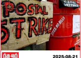 තැපැල් සේවක වර්ජනයේ 4වැනි දිනය අදයි, තැපැල් දෙපාර්තමේන්තුවට මේ වන සිදුව ඇති පාඩුව කෝටි 10යි. විසඳුමක් වර්ජනය සිදුවන බව විදුලි සංදේශ නිලධාරින්ගේ සංගමයේ සභාපති ඊ. සී....