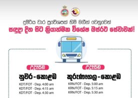 මහනුවර සිට කොළඹ දක්වා සහ කුරුණෑගල සිට කොළඹ දක්වා රැකියා සඳහා ගමන් කරන දුම්රිය වාර ප්රවේශපත්ර හිමියන්ට දුම්රිය සේවාවලට බාධා ඇති බැවින් බස් රථවලින් ගමන් කිරීමට...